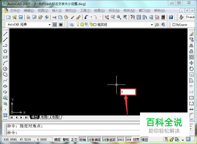 输入多行文字创建快捷键“t”,点击空格或者回车键执行多行文字创建命令,如图所示: