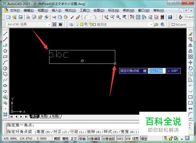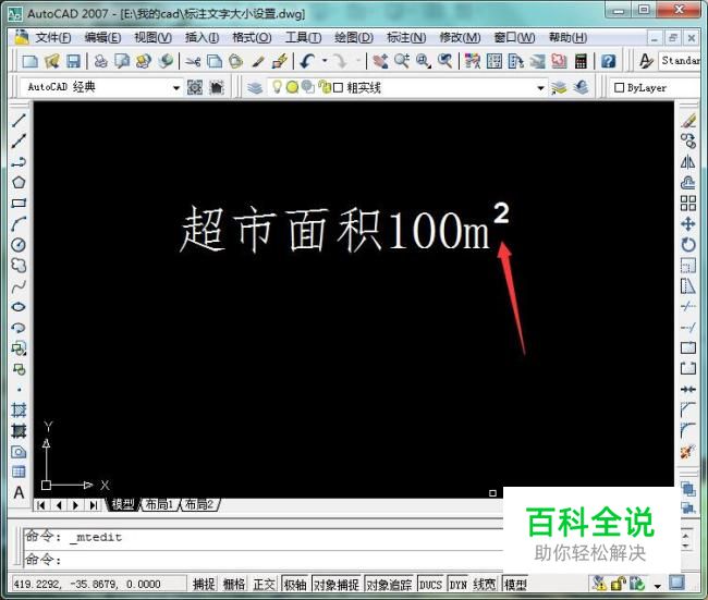 点击工具栏上方的确认退出该操作,输入上标操作完成。可以看到平米符号就出现在图形中了,如下图所示: