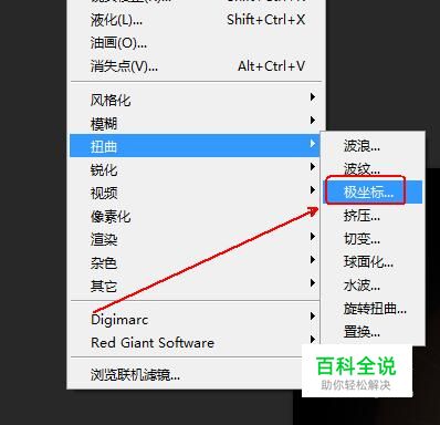 菜单栏:执行“滤镜”-“扭曲”-“极坐标”命令,参数如下。