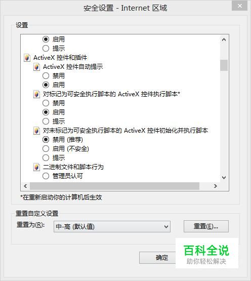 如果电脑有安装上述软件,那就要检查浏览器的设置是否正确。 打开IE浏览器, 点击 工具里Internet选项在点击高级,在“设置”––“多媒体”中把“在网页中播放动画”、“在网页中播放声音”、“在网页中播放视频”、“显示图片”(我的电脑是w8的系统)这四项勾选, 再点击 安全——自定义级别,在“设置”框里找到“脚本”一栏,并且把其下面的三个选项全部选择“启用”,动滚动条找到关于Active的描述,将其开启。再依次点击“确定”按钮两次即可。