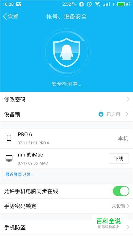 进入设备安全设置界面,选择“设备锁”