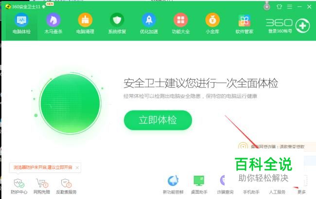 大部分遇到这种情况是因为优化了dns服务导致的。 处理方法:点击打开安全卫士软件,在软件界面点击右下角的更多。