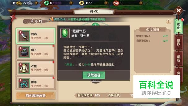 如果玩家有足够的玄玉,此时也可以在商城→玄玉→强化页面通过花费玄玉购买获得凝气石。
