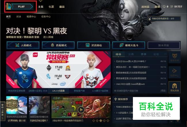 首先登陆新版本英雄联盟点击PLAY