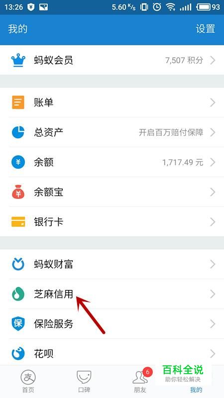 进入个人信息界面,选择“芝麻信用”