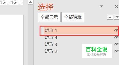 在格式功能区,排列组中单击选择窗口,在页面右栏,弹出选择窗口,在选择窗口中矩形1,2,3,4就是这四和图形。