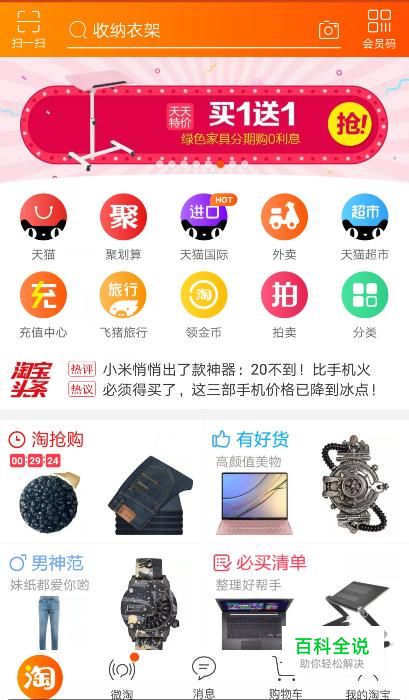 首先进入淘宝首页,找到自己想要的商品。