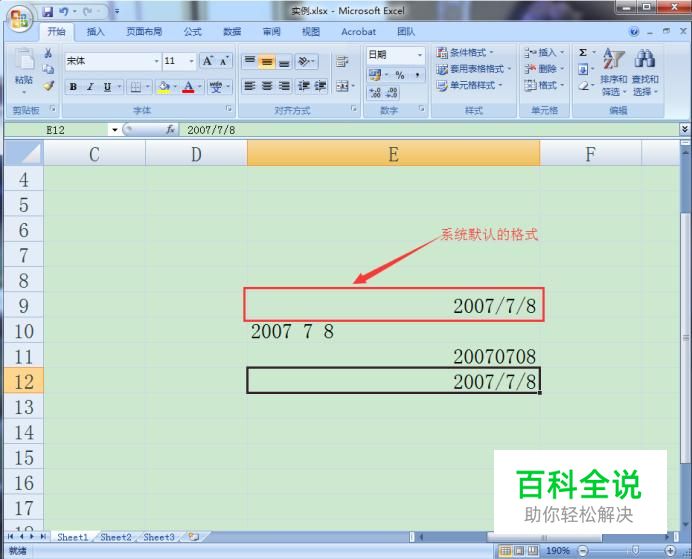 要改变日期的格式必须在单元格里面输入日期信息,如下图。