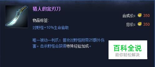 出门装一般都是“猎人的宽刃刀+红药”,装备被动,对野怪有10%生命偷取,可以让皇子在也去有不错的续航能力,而且,一般蓝色方就是蓝开,2级有EQ技能后可以观察一下下路有没有机会,有机会就可以选择直接抓下;(装备属性:对野怪+10%生命偷取,其他被动详见图)