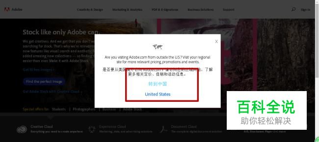 首先,我们进入Adobe的官网:https://www.adobe.com/cn/ 或者直接在网页搜索Adobe,点击进入。