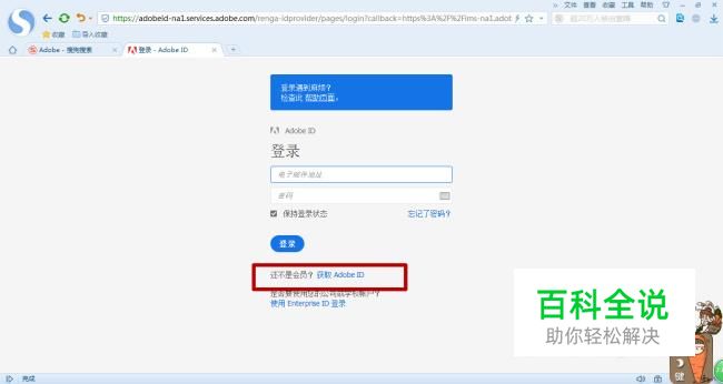 现在还没有账号,就点击“获取Adobe ID”.