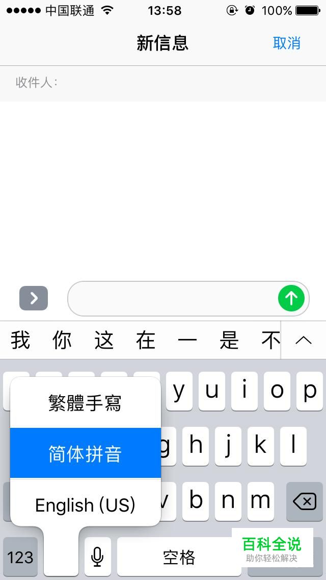 打开需要文字输入的界面,以短信为例进行演示。