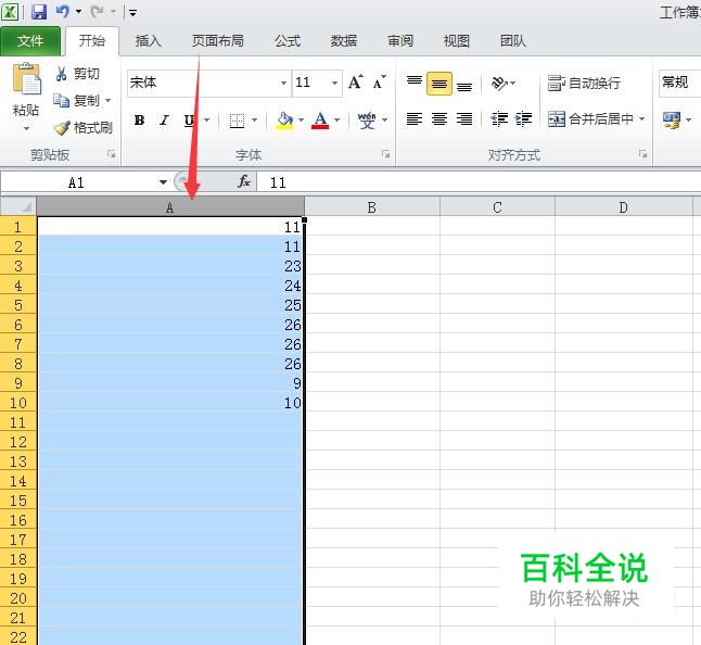 之后,会弹出一个窗口,在这里,可以看到我们选择的是列A,点击“确定”。