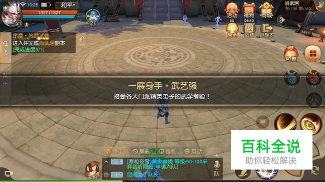 走到圆圈内后会弹框提示副本信息,这个副本的通关条件是和各大门派的精英弟子进行对决。