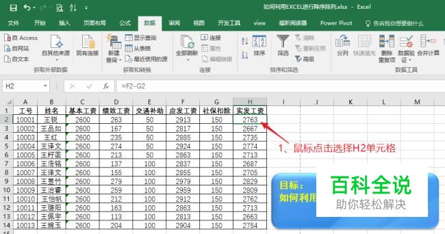 点击以后可以看到工资表已经按照实发工资的多少由多到少重新排列