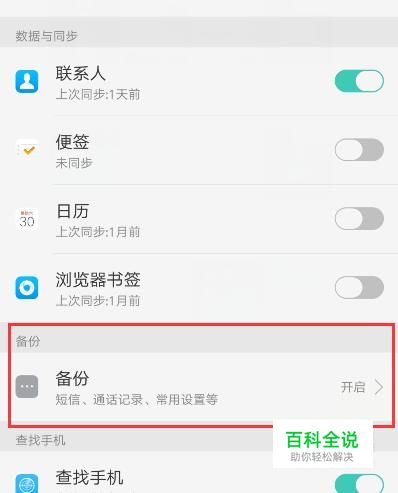 进入云服务中心后,有【数据与同步】【备份】,这里点击【备份】选项
