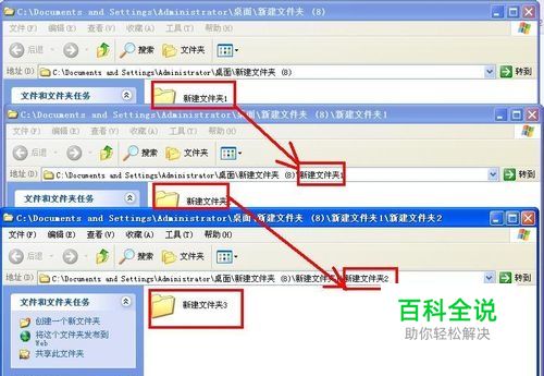 如图所示,“新建文件夹1”的下一级为新建文件夹2”,“新建文件夹2”的下一级为新建文件夹3”,可是打开文件夹后,却显示了好几个窗口。