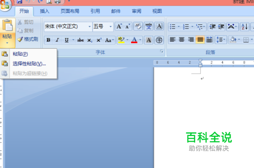 这时候,我们就可以在想要粘贴的时候,先点击word左上角的【粘贴】按钮处的小三角,会出现一个选项【选择性粘贴】,如下图