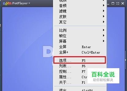 打开PotPlayer播放器,右键,选项。(或者按F5快捷键)。KMPlayer播放器直接跳到第5步。