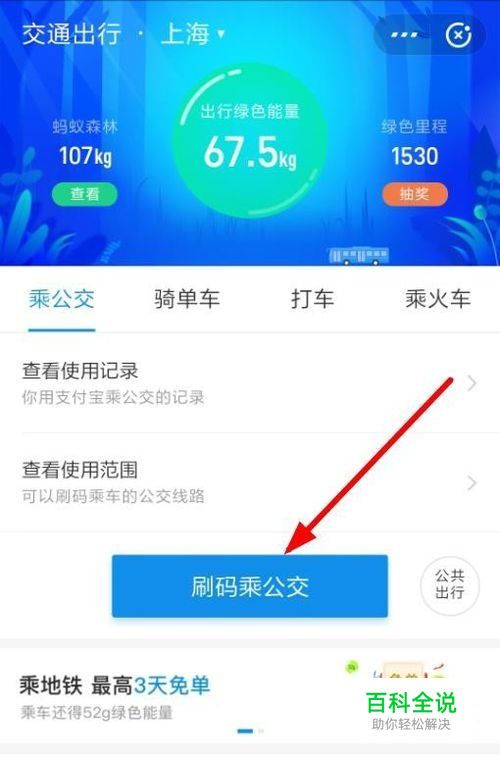 我们可以看到乘公交这里点刷码乘坐公交。