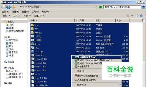 按CTRL+A,把所有文件全选,再点右键,选择:添加到压缩文件……如图。