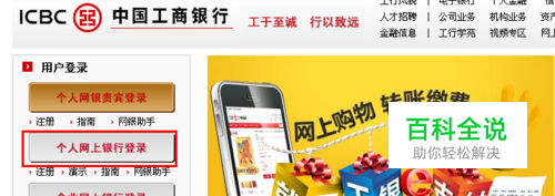 打开工商银行的官方网站,然后点击左侧的“个人网上银行登录”项。