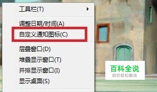 第二种情况:图标被隐藏不显示了。 在电脑最下面的任意位置》鼠标右键》选择自定义通知图标。 点的位置看下图的红色框的地方。