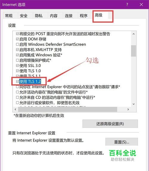 第四步:在 高级中,下拉,找到 使用TLS1.2勾选。点击右下角 应用。