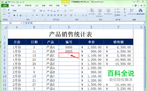 回到电子表格界面,这时在编号中输入“0006”并回车,可以看到单元格能正常显示6前面的0了。