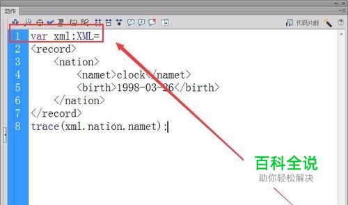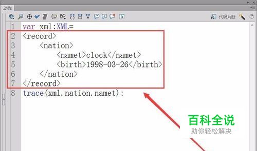 如果要访问XML文档中的数据,可以使用点语法来实现,例如用xml.nation.namet语句访问姓名的值。