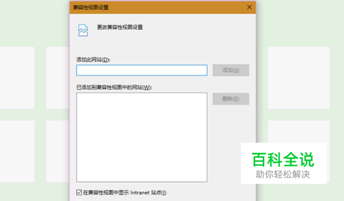 点击该菜单项,弹出“兼容性视图”设置,这时“添加此网站”中应该有前述内部网站的地址。点击右侧“添加”,然后“关闭”。 这时,上述打开的内部站点应该随即刷新,原来不能正常显示的内容,应该有所改善。