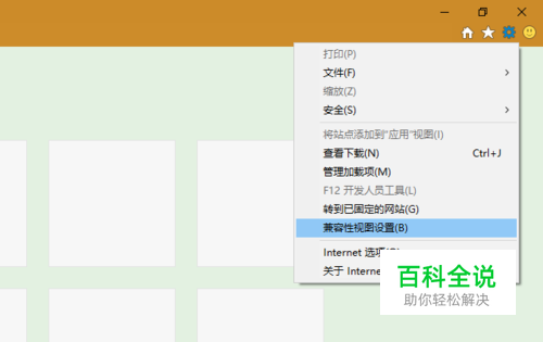 在 IE 中,打开一个显示不正常(或功能不正常)的网站,然后点击窗口右上角的小齿轮图标,弹出工具菜单,其中有一项是“兼容性视图”设置。