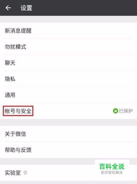 设置界面,找到“账号与安全”