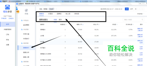 看区域(黑框部分),这里有很多不同的词的分类,一般我们都是使用热门搜索词,而其他的分类用的并不多。