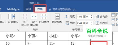 如果想输入糖果的总和,先把光标移到第二行第六列,选择表格工具下的布局。