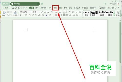 新建一个WPS文档,找到菜单栏中的“审阅”选项卡单击