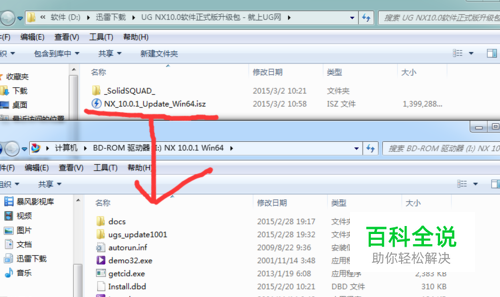 先下载UG10.0升级包,下载完成的升级程序文件夹中,有两个文件,1是破解文件,2是安装主程序文件;(由于主程序的格式是ISZ,需要事先在电脑上安装虚拟光驱)