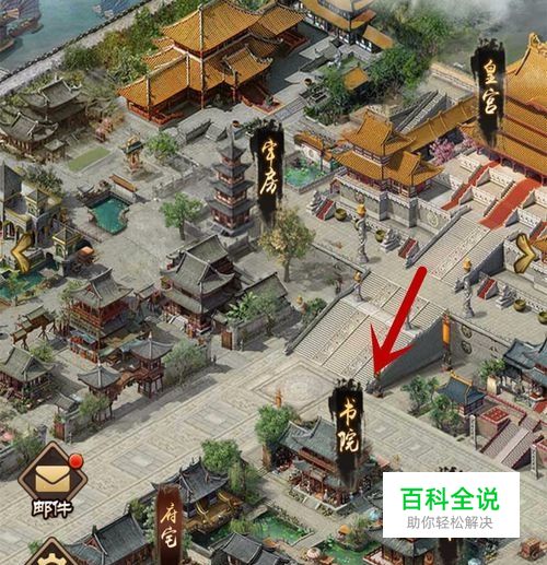 首先我们在城池里面点击【书院】,进入到书院当中,如图所示。