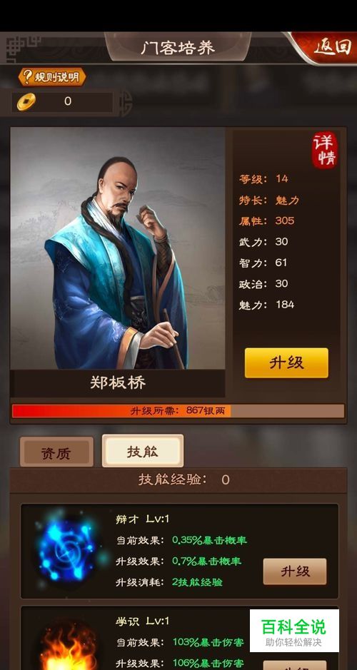 九品芝麻官如何升级门客技能