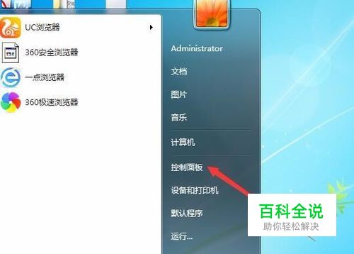 在Windows7旗舰版桌面,点击开始菜单,在弹出菜单中选择“控制面板”菜单项
