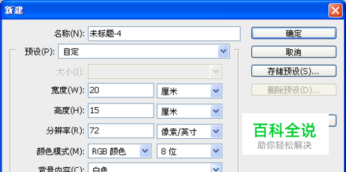 编缉——新建一个文档,快捷键Ctrl+N,大小可以自己选定,不合适的后期可以在图像——画布大小那里再调整。