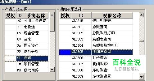 依次点击“总账”-“设置”-“明细账权限”菜单,为该操作员选择查询科目