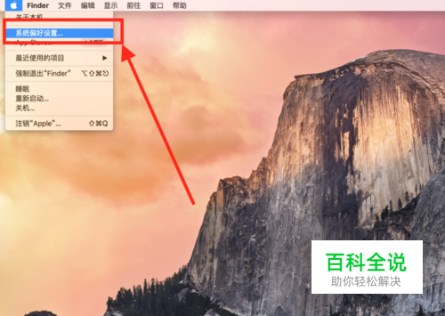 首先点击左上角的苹果图形,找到“系统偏好设置”,点击进入。