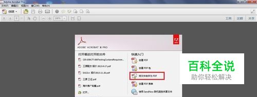 启动Adobe Acrobat Pro, 在界面中有个快速入门,里面有一项是“将文件合并为PDF”,单击它