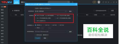 优酷不仅可以播放视频,上传下载视频,而且也可以把视频转换成其它格式或者把视频音乐转换成MP3格式,这样就可以把优酷的特殊格式转换成通用格式,怎么操作呢?今天小编和大家分享一下。
