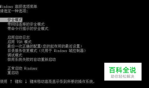 首先电脑保持关机状态,按下开机键,启动后立马连续按键盘上的F8键,直到出现高级选项菜单。然后按方向键“↓”键选择“安全模式”进入系统。