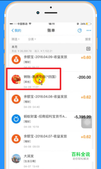 打开支付宝,然后点击 我的---账单 只有和别人之间的转账才可以申请电子回单。