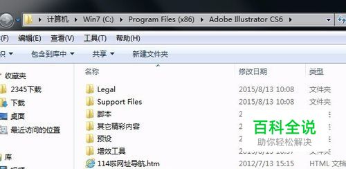 找到ai软件的安装位置,确认安装文件是否还存在你的硬盘中 文件夹:大部分在C盘program files (x86)打开,找名称为Adobe Illustrator CS6的文件夹并打开。如有如图所示的文件,那么恭喜你,问题很简单;如果文件夹为空,删除文件夹并清理注册表垃圾后重新下载安装