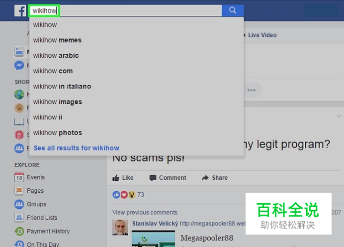 使用Facebook的搜索栏