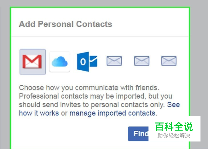 当你刚刚加入Facebook时,就会看到网站为你提供了多种查找好友的方法和选项。如果你的好友还没有加入Facebook,你可以给他们发送个人邀请函来邀请他们加入,并成为Facebook好友。当你在Facebook上添加了你的好友后,你就可以在这里与他们进行交流互动了。注意,有些用户将他们的账户设置为不可查找的隐私模式,所以,你可能无法找到他们。如果你需要在Facebook上查找好友,请尝试本文列出的方法来联系他们吧。